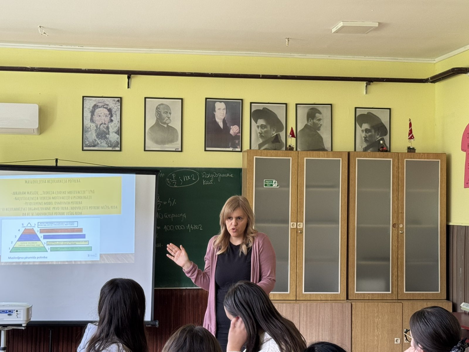 У Техничкој школи Косјерић успешно је реализован угледни час-радионица на тему „Тимски рад, људске потребе и квалитетно образовање – како градимо демократску културу у школи“. Учесници радионице били су ученици одељења IV/1, који су кроз интерактиван приступ истраживали кључне елементе за успех у образовању и животу: сарадњу, разумевање људских потреба и изградњу демократских вредности у школском окружењу. Реализацију часа водиле су наставнице Мирјана Дуњић Радосављевић (предмет: Предузетништво) и Јелена Павловић (ЧОС), уз стручну подршку школског психолога Гордане Штуловић. Њихов заједнички рад резултирао је креативним и подстицајним окружењем за ученике, који су активно учествовали у свим сегментима радионице. Интердисциплинарни приступ: Спој психологије, предузетништва и грађанског васпитања. Час је осмишљен као интердисциплинарна активност која обједињује области психологије, предузетништва и грађанског васпитања. Овај приступ омогућио је ученицима да тему сагледају из више перспектива, повезујући теоријска знања са практичним искуствима. Централна тема часа била је Масловљева хијерархија потреба и њена примена у школском контексту, са посебним освртом на значај тимског рада и улогу пројекта „Квалитетно образовање за све“ у подстицању инклузивности и личног развоја ученика.